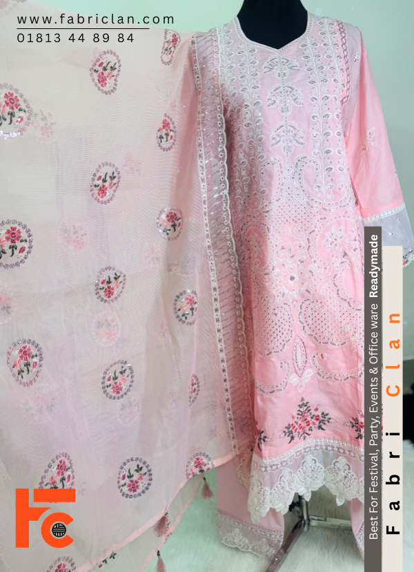 Baby Pink লাক্সারি কটন রেডিমেড থ্রিপিস