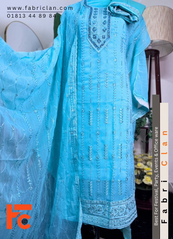 Frozen Blue স্টার জর্জেট লাক্সারি ফোর পিস