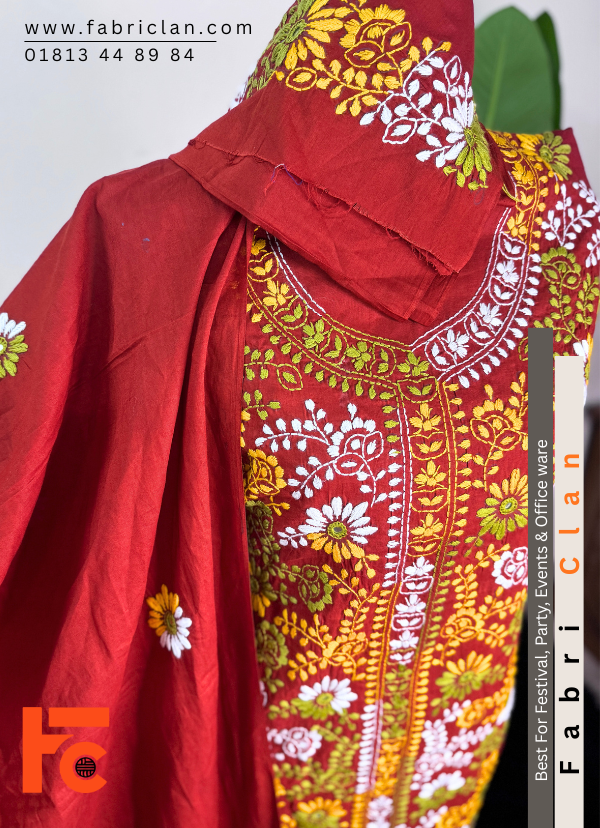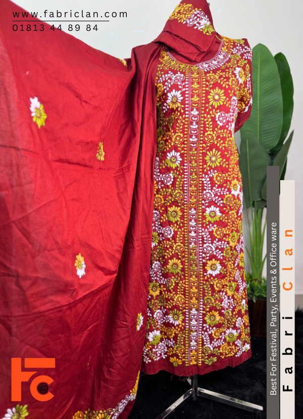 Maroon red Elegant জামালপুরের নকশী থ্রি পিস