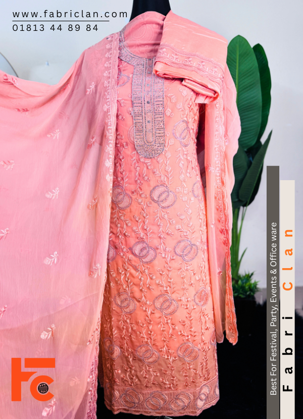 - স্টার জর্জেট স্টোন লাক্সারি এম্ব্রইডারি লেজারকাট ফোর পিস ড্রেস