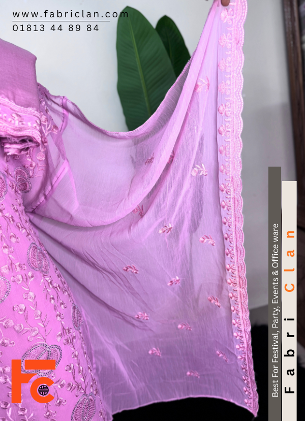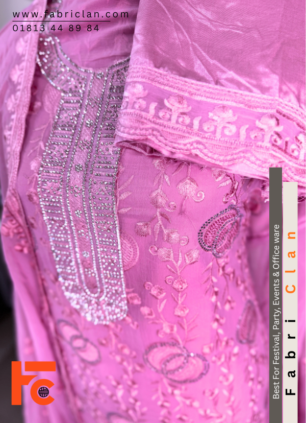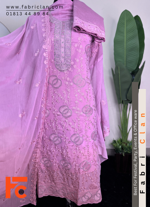 - স্টার জর্জেট স্টোন লাক্সারি এম্ব্রইডারি লেজারকাট ফোর পিস ড্রেস