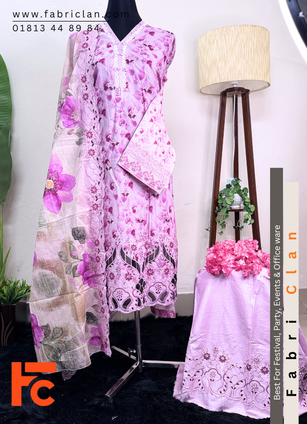 Purple-Pink পাকিস্তানি ইন্সপায়ারড লেজারকাট কটন | Pakistani Inspired laser Cut