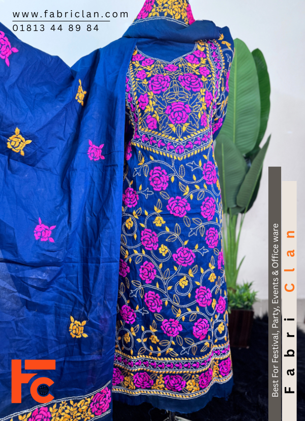 Royal Blue জামালপুরের নকশী থ্রি পিস